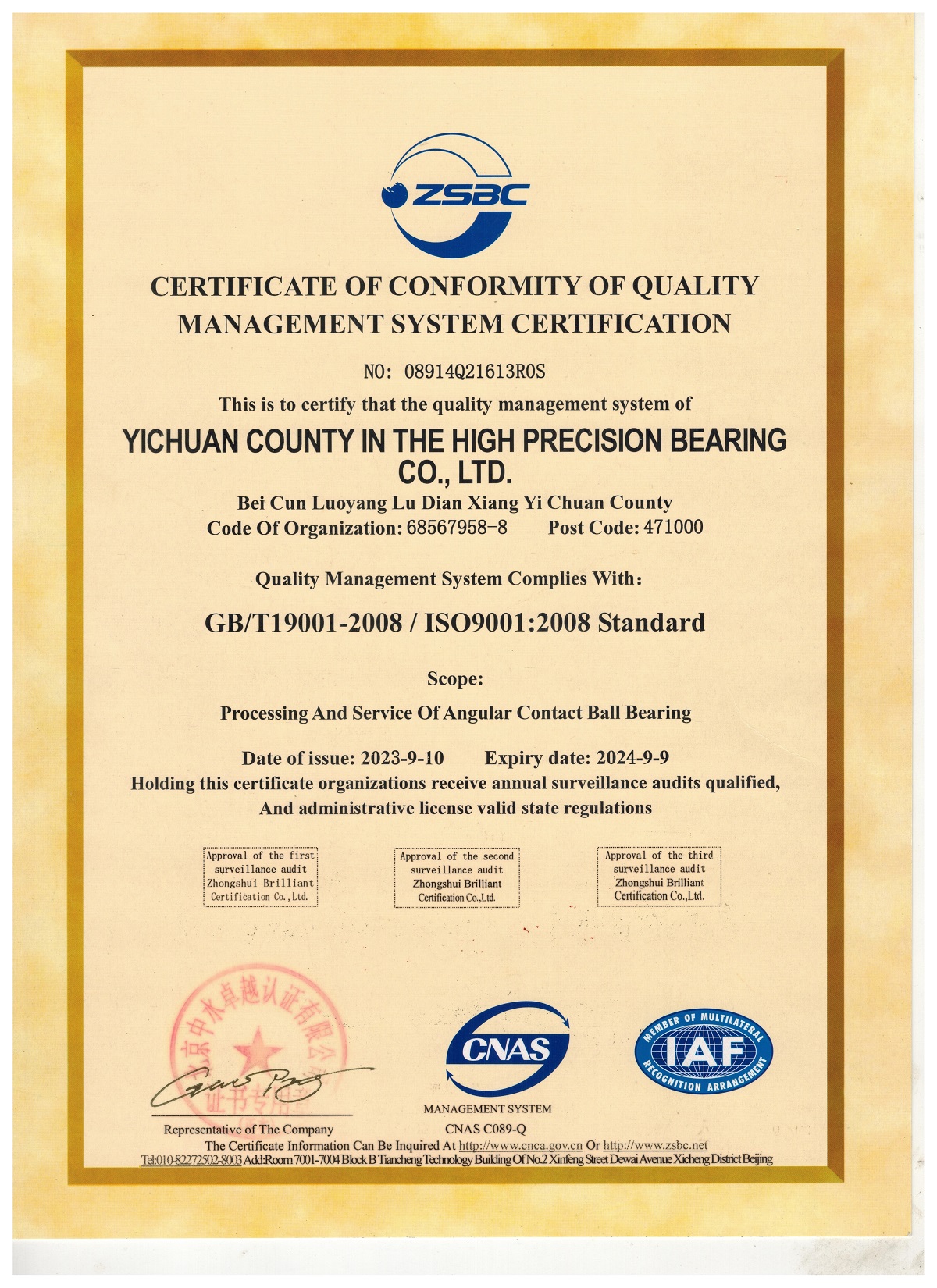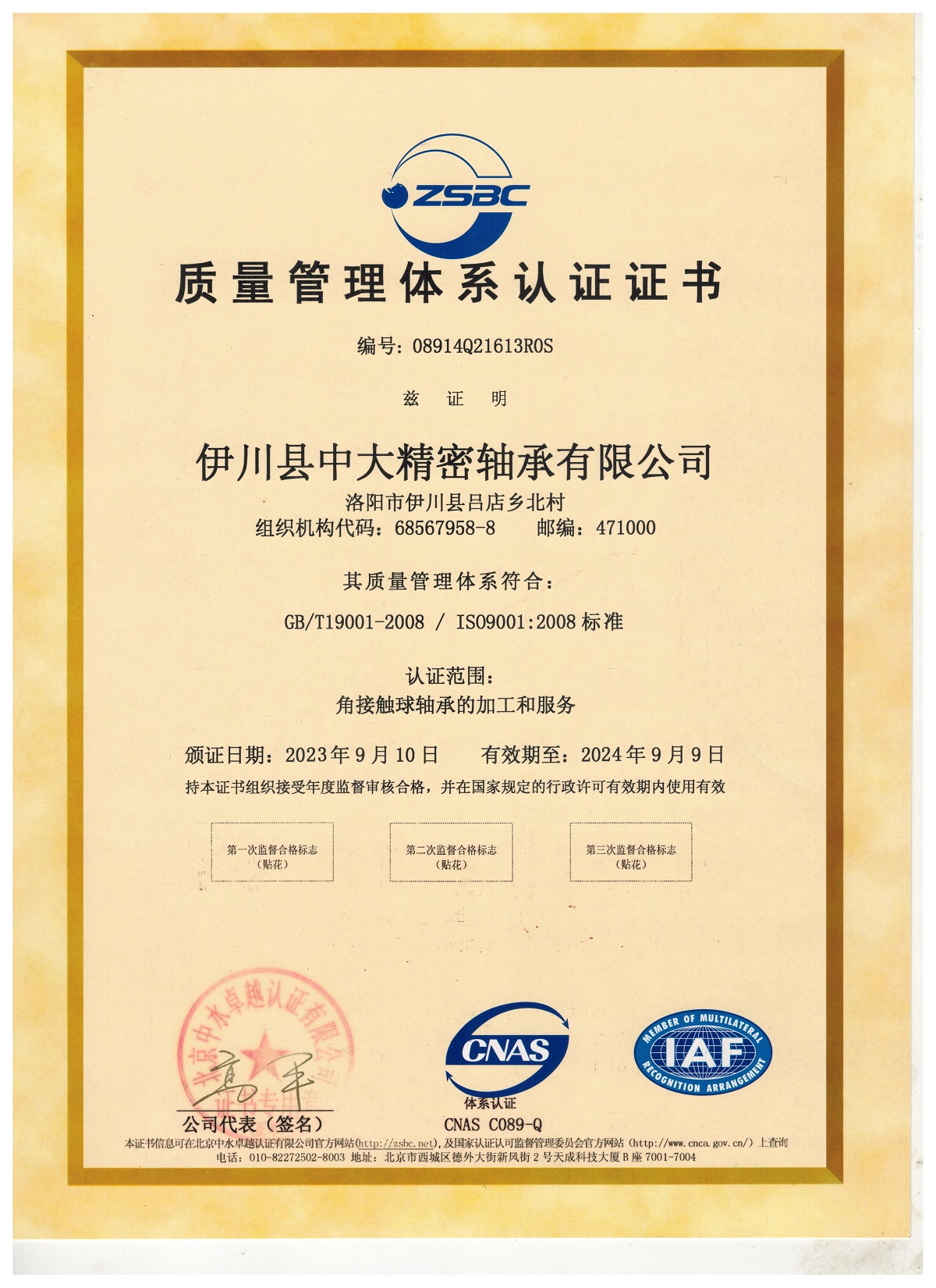 質量管理體系認證證書中文